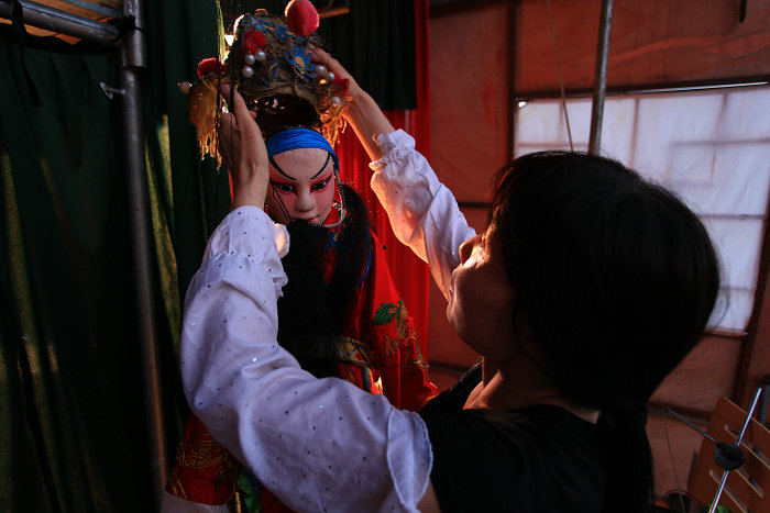 合阳提线木偶戏是一古老地方剧种,俗称“线戏”“ 线猴”“线胡”或“小戏”。提线是合阳线戏的主要表演方法,偶人系线根据角色的不同,分别为五到十二根不等,还有增加到十七、八根甚至多到二十余根的。偶人通高80-90厘米,重3.5-5公斤。通过线戏艺人巧妙地运用提、拨、勾、挑、扭、抡、闪、摇等手法,赋予木偶以艺术生命,动作栩栩如生。可以娴熟地完成卸帽子、脱衣服、搬椅子、抡杆子、单双闪官翅等特技动作。合阳提线木偶戏剧目丰富,最受群众欢迎的是“三箱(厢)”(《百宝箱》《囊哉装箱》《西厢记》)“二楼”(《谪仙楼》《鸳鸯楼》)“双钗”(《金琬钗》《双凤钗》)以及《蝴蝶杯》等。合阳提线木偶独特的声腔,被称作线腔,悲怅苍凉,委婉细腻,颇具秦地风韵。合阳提线木偶戏2006年被列入第一批国家级非物质文化遗产名录。