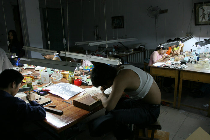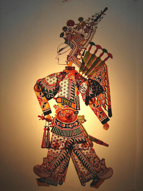 华县皮影制作与皮影戏演出紧密相连,它起源于秦汉,至今仍保留着手工制作的原貌。制作主要有五大工序:第一步是皮革处理,选用不满六岁秦川黄牛皮,在清水中浸泡几天,刮去脂肪和牛毛,绷紧阴干后根据需要裁成块,再打磨光滑,制成形似玻璃的皮料;第二步是雕刻,把图样放在皮料下面,用钢针描出纹样,采用推皮走刀手法,右手握刀不动,左手推转牛皮进行雕刻,这种手法刻出的皮影刀口整齐,刚劲有力,其最能表现刀工手法的为雪花及万字图案;第三步是染色,把雕刻好的皮影推平打光,用透明颜料加牛皮胶调制成染色剂,根据皮影的图案进行平涂和烘染;第四步是熨烫,又称出水,用两块特制的土坯加高温熨烫皮影,熨烫火候不到则不展挺,火候过度就会灼焦,全靠艺人的经验掌握,因此出水常被艺人当作不传之秘;第五步是装订,把雕刻好的各个部件经过连结、固定或嵌套,在影人颈部和两手腕处各加一根竹签,一个活灵活现的皮影就制作完成。华县皮影制作影响深远,作品远销美国、日本、德国、法国等地。华县皮影制作技艺2007年被列入第一批陕西省非物质文化遗产名录。