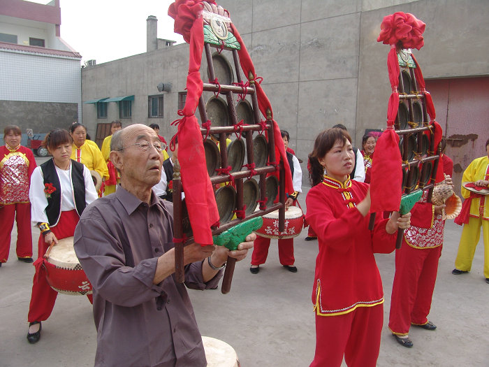 韩城“谏公”鼓吹乐是韩城市西庄镇杨村王姓家族祭祀祖先的音乐。清顺治年间王姓家族春节祭拜祖先,即用云锣、海牛等乐器演奏此曲,以示不忘祖恩。康熙年间,天下安定,王姓人丁兴旺,生活富裕,便重新购置了铙、钹、云锣等乐器,并将曲谱命名曰“谏公(即尊长之意)”,于每年春节、清明节演奏,流传至今。“谏公”鼓吹乐演奏形式独特,有固定的表演程序,分别为:一金钟破晓(打钟五响,示意天快明了,催人早起),二海牛净宫(海牛(海螺)吹五响,赶走牛鬼蛇神,清净祠庙),三道士清堂(清扫祠庙,清除神像牌位尘土,以备长者祭拜),四云锣祭拜(音色不同的云锣按曲调顺序敲响,祭拜人双手端贡品,祭献跪拜),五古乐震宇(跪拜祭献完毕,祭拜的长者出祠庙,此时要大奏鼓乐,振奋人心)。“谏公”鼓吹乐的演奏形式有独奏有合奏。古腔古调,优雅动听。演奏鼓阵前后执事的摆设庄严肃穆,服装颜色多样,演奏所用的铜器中,铙钹每副重五斤半,锣、镲相对较小,“云锣”一副10个,音色各不相同。韩城“谏公”鼓吹乐2009年被列入第二批陕西省非物质文化遗产名录。