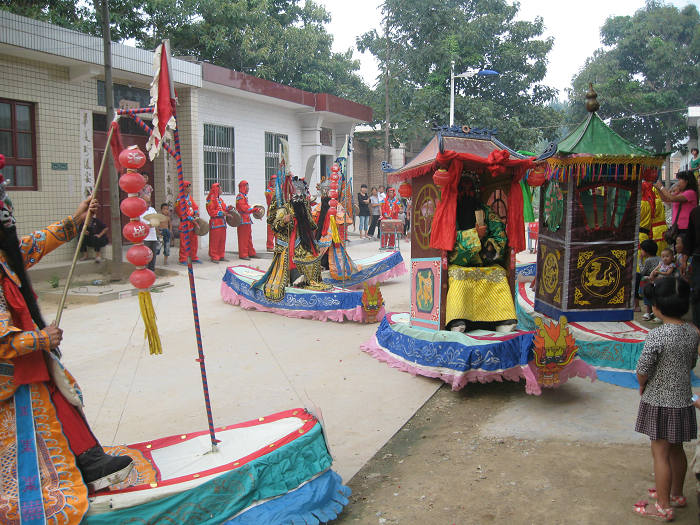 潼关古战船始于古代水战之实际需要,其装扮表演以古代战船为原型,主要分布于高桥乡、秦东镇一带。内容分为五个部分:1、火流星开道。艺人挥舞火流星(铁丝编网,内装烧红的木炭)和铁鞭巡场一周。2、竹马上场。艺人跨坐竹马(竹片编制的假马),象征水军陆战队,清除河岸敌军。3、战船出击。古战船装扮的是水上征战故事,如“单刀赴会”、“草船借箭”等,艺人妆扮成戏剧人物,站在战船内,双手提船掌舵,做出指挥、进击、搏斗、突围等动作。4、舞龙舞狮。战斗正酣,龙狮加入表演队伍,将水战场面推向高潮。5、锣鼓助兴。锣鼓贯穿整个表演过程,既可单独表演,也用于指挥战船队形变化。