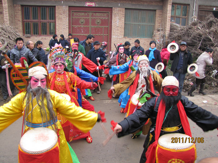 八仙鼓因八位鼓手扮演传说中的八仙而得名,主要流传于临渭区田市镇新田村及其周边地区。它是一种将扁鼓系于腹前,边鼓边舞的民间社火舞蹈,距今有二百多年历史。八仙鼓打法简洁,主要用“三槌”和“七槌”,舞蹈动作较多,常见的有“行进击鼓”、“跨跳击鼓”“弓步击鼓”、“对鼓”等;队形变化丰富,有“八仙过海”、“八仙观阵”、“八仙聚会”、“八仙议事”、“八仙串访”、“分花”、“插花”、“辫花”、“蜕花”、“对花”、“背花”等十多种。八仙鼓的服饰、道具融汇了佛道的文化元素,表演时,艺人勾眉画脸,身穿八仙服饰,佩戴八仙法器,俨然如各路神仙降临凡间,按照结盟议事、临兵列阵、结阵迎敌、施法除魔、周游四方等程序依次展开,并有大锣、大铙两支队伍伴奏,场面壮观,具有一定的叙事性。田市八仙鼓2011年被列入第三批陕西省非物质文化遗产名录。