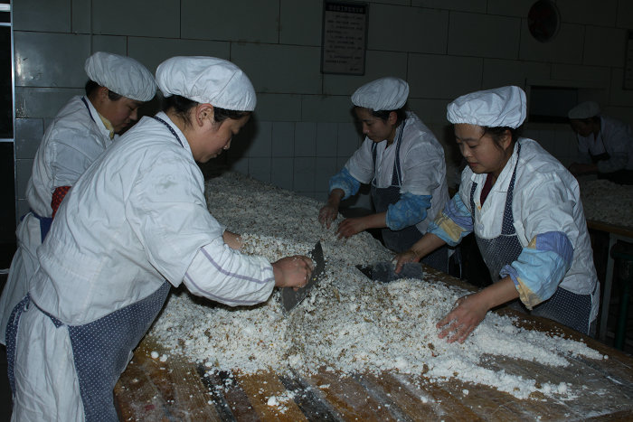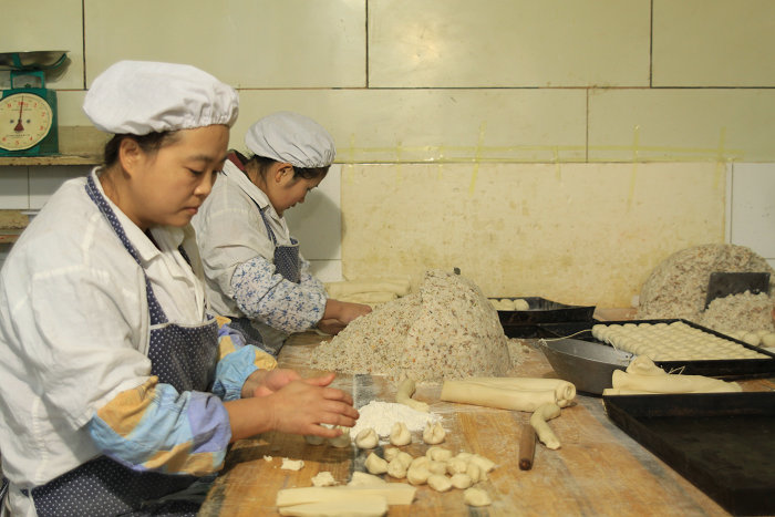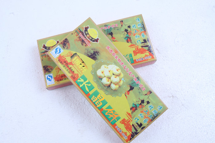 水晶饼制作技艺流传于临渭区下邽镇,今已辐射临渭全境至临潼等地。水晶饼源于何时已不可考,相传宋代名相寇准观其馅料通明发亮、皎洁晶莹而以“水晶饼”名之。现生产的石灰窑水晶饼继承了传统水晶饼的特点,结合现代工艺使地方特色食品得以发扬广大、经久不衰。石灰窑水晶饼主要由淹制,搅拌,制皮,包合,盖章、烘烤五个工序制作:一是将板油与白绵糖搅在一起,切丁淹制;二是将淹好的馅料与青红丝、桂花、冰糖、桔饼等十余种配料搅拌均匀;三是将面粉与大油搅和,制作成酥面(酥面制作中不加水),用面团将酥面包住制成皮面。四是将皮面揪成等量均匀的小面团,包酥与搅拌好的馅料包合制饼。五是盖章,烘烤。石灰窑水晶饼的特色是金面银帮,食之凉舌渗齿,甜润适口。石灰窑水晶饼制作技艺2011年被列入第三批陕西省非物质文化遗产名录。