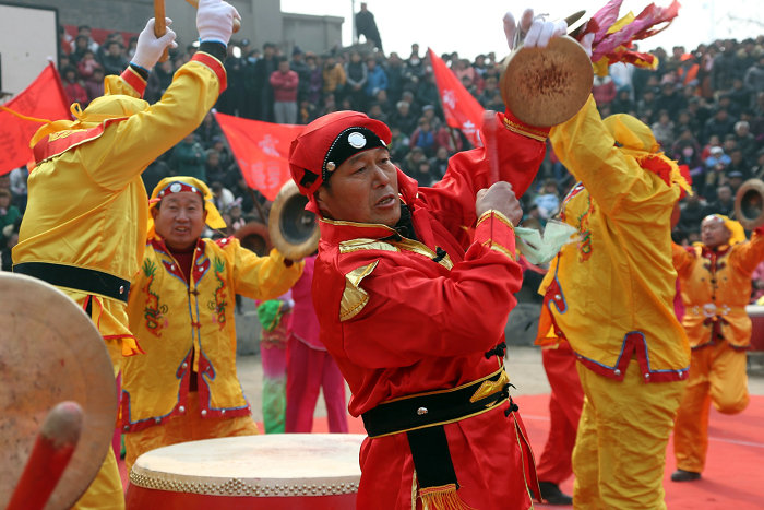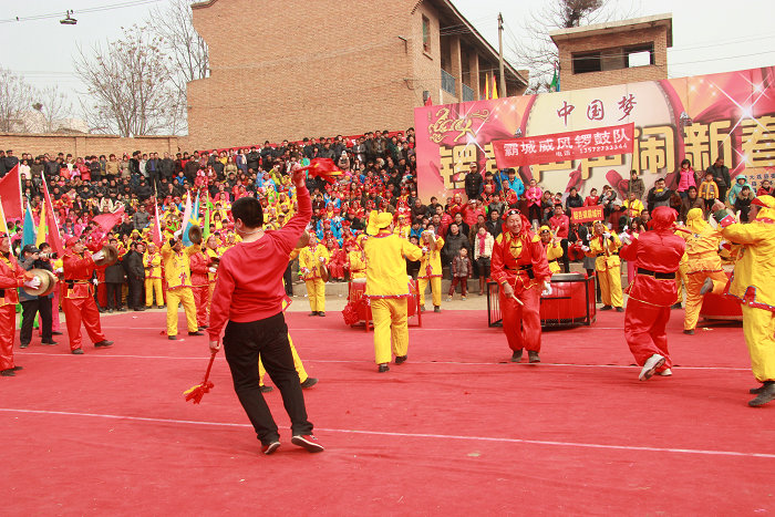 霸城锣鼓是大荔县沙底乡霸一村的一种传统舞蹈,起源已无从考证,但从完整的表演程式来看,应形成于清代前期。霸城锣鼓于每年腊月十八在年货会独立演出,平常节庆活动中,也常常与跑花车、打社火、耍龙灯、踩高跷等综合表演。演出分为彩车巡游表演和场地队形表演两种形式,用到大鼓、大镲、小锣、大锣等乐器,活动规模较大时,也把两种形式结合起来,参加人数往往超过百人。霸城锣鼓的表演程序根据一年四季进行划分:1、以《四声雷》为开场鼓,接着敲响《连三槌》和《八槌鼓》,表示在春雨中播撒种子。2、两曲《南瓜蔓》先后奏响,然后敲响欢快的《摘豆角》,充满着夏日劳作中挥汗如雨,却又满心喜悦的感情。3、秋收季节,成群的小孩子在场院里《滚核桃》,远处的山上流着《长流水》,还能看见《猴钻山》,表演《连山乐》。4、冬季乐章,有《庆丰收》两首,《闹秧歌》两首,最后以《满堂红》和《全家福》圆满结束。霸城锣鼓2008年被列入第一批渭南市非物质文化遗产名录。