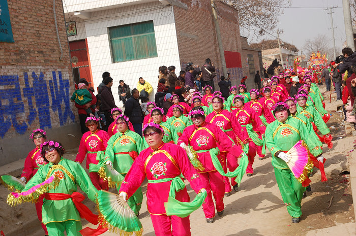 西阳秧歌流传于大荔县官池镇及洛河以南一带。官池地处沙苑腹地,从西魏到明清,先后聚集了不同民族和不同地区的移民,西阳秧歌是民族大融合过程中的民俗产物,于每年正月十五打社火时举行,至今不衰。秧歌队一般每组30人,四组共计120人左右,舞蹈者皆为女性,另有两位男性口吹哨子负责指挥。表演者身着各色民族服装,一手执扇、一手拈花。挑挑担、迎风摆、纺线线为主要动作,穿插变幻以蛇过套、转牡丹、喜相逢、转十字、扭八字等多种套路。舞蹈时两人一组,且行且舞,动作夸张,富有幽默感。演到欢畅处,队列相互穿插,令人眼花缭乱。西阳秧歌集多种民族舞蹈于一身,又根据当地文化和自然环境形成了不同于一般秧歌的表演形式,具有独特的历史文化价值。西阳秧歌2010年被列入第二批渭南市非物质文化遗产名录。