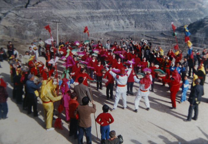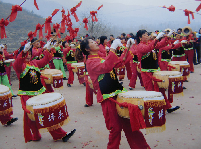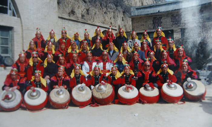 坪头锣鼓流行于韩城市北塬乡一带。据传元灭金后,蒙古骑兵击军乐鼓欢庆,后人将其继承下来,作为祭祀法王的鼓乐。表演时鼓手身着黄马褂,头戴战盔,腰束战裙,成骑马蹲档式,击打时,仰面朝天,气冲霄汉,如醉如痴,特别是敲到《上坡》、《发柏梢》等鼓点时,时而狂击,时而慢敲,如波浪式紧三慢三,锣、鼓、镲时而合击,时而分击,阵容随之变幻,风格粗犷,声势浩大。几十名身着艳服的姑娘,眼戴墨镜,手执绑有五彩绸布和小串铃的长绕杆,穿行其间。鼓声动地,绕杆翻飞,组成了一副壮丽的画面。坪头锣鼓2010年被列入第二批渭南市非物质文化遗产名录。