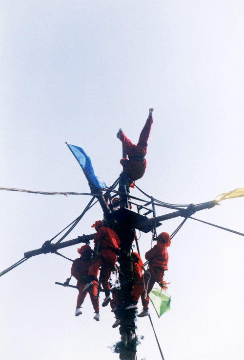 澄城扶老杆又称神杆,主要流传于安里乡张卓村、雷家洼乡郑家村等地。相传扶老杆是由明末清初的几位民间艺人自创而成,在每年二月二龙抬头时举办,后发展到每年正月初十至二十三日之间举行,用以庆祝新春并寄托人们对新一年风调雨顺的美好愿望。老杆是把十几根长约6-7米、直径约0.3米的粗椽错茬连接后用绳子扎紧制成的24米长高杆。它的最上端做成十字架,上插彩旗。十字架的四根横椽上掉四个马挂(一根木头两头用绳吊起来称作马挂)。老杆用碌碡做底座,上面放一个石墩,石墩上面扣一口砂锅。老杆就立在砂锅上,四周用缆绳拉紧。扶老杆的表演主要是原地高空表演,人数通常四到八人,扮演《唐僧取经》或《八仙过海》,表演者身穿红衣红裤、头戴红巾、腰围红带,在喜庆热闹的锣鼓声中脚踏手扒,依次爬至杆顶,表演过四门、溜梢棍、倒挂脚面、扇簸箕等惊险动作,充分展示高空艺术之美感。澄城扶老杆2010年被列入第二批渭南市非物质文化遗产名录。