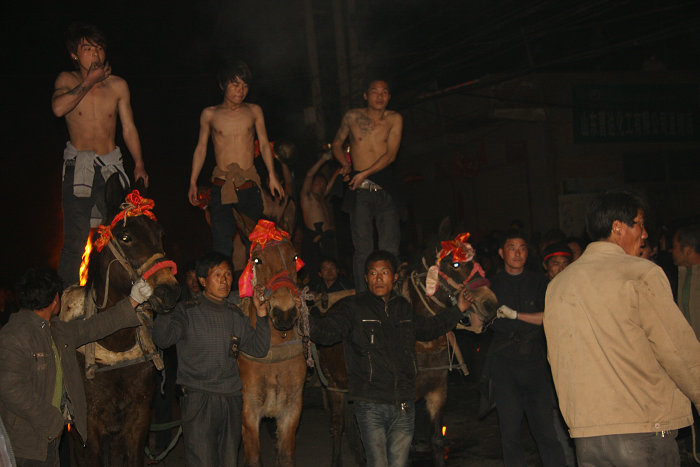 大荔县西寨乡马坊村地处黄、洛、渭三河交汇的沙苑深处,为秦汉时兵家争衡之地。当地人模仿汉代战争的战车娱乐来调剂生活,形成了跑汉车的习俗。跑汉车一般在每年正月十五期间举行。一辆汉车需要15-19人,其中4人驾辕(控制方向),2人护辕(协助驾辕),2人拉梢(控制进退),2人开路,1人拦头,1人表演,车上载锣鼓队,由六、七人组成,车队后有一个拾路(意为打扫战场人员)。表演时,五匹骡子拉车,4人驾辕以百米速度飞奔,表演者在骡子身上变换身姿,腾挪跳跃于各个骡子之间,令人叹为观止。与此同时,护辕2人挥鞭猛抽骡子,以加快速度,护梢的两个人负责牵拉,保证安全。俨然一支配合默契、训练有素的战斗小分队。跑汉车保留了古代战争指挥车的形式,为研究古代战车有参考作用。大荔跑汉车2010年被列入第二批渭南市非物质文化遗产名录。