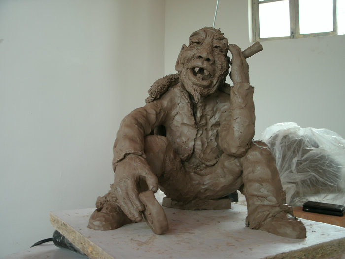 上徐泥塑技艺是白水县上徐村郭姓家传的独得之秘,它采用当地的红粘土和白粘土为主要原料,经过炼工、翻坯、烧制等二十多道工序制作而成。制作时,先将胶土与水和成糊状,经过窖淋渗干多余的水分,把泥挖出来放在平板上,加适量麻纸或棉花,用木棒反复捶打,直到混合均匀。之后经过一番用力摔打,用塑料纸密封三天,便可捏制。泥塑制作全凭艺人的手上功夫,借助竹签、铁条、小刀、细锯等,通过点、按、挑、刻、画的手法和泥点、泥线的堆积,塑造作品。上徐泥塑的代表作品有《陕西八大怪》、《白水四圣》、《关中风情》、《爷孙钓鱼》、《农家情》、《男童上树》等,造型诙谐有趣,色彩简洁明快,地域色彩鲜明,朴拙奔放,深受人们喜爱。上徐泥塑2010年被列入第二批渭南市非物质文化遗产名录。