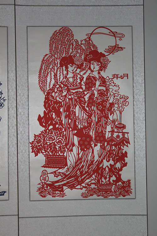 何刘剪纸出于临渭区三张镇油张村。从清朝末年至今,历经四代传人,百年历史。何刘剪纸的特点是多用剪刀、少用刻刀,构图简单、造型小巧、线条流畅,富于趣味性和装饰性,带有浓重的乡土气息。它的代表作品涵盖人物、动物、花草、文字、山水等。尤其人物剪纸在发展过程中吸收了皮影的雕刻技法,人像鼻尖挺拔、服饰花纹多样,具有很高的审美价值。何刘剪纸常见的图案分为对称和不对称两种类型。对称的有两边、四边、六边、八边对称。不对称类在形象上删繁就简,适当夸张,布局上力求丰满,注重形象间的连接,以人物、动物、山水剪纸使用多。何刘剪纸主要用作春节窗花、元旦门签、元宵灯花、婚俗喜花、丧俗祭纸以及各类民俗装饰。何刘剪纸2010年被列入第二批渭南市非物质文化遗产名录。
