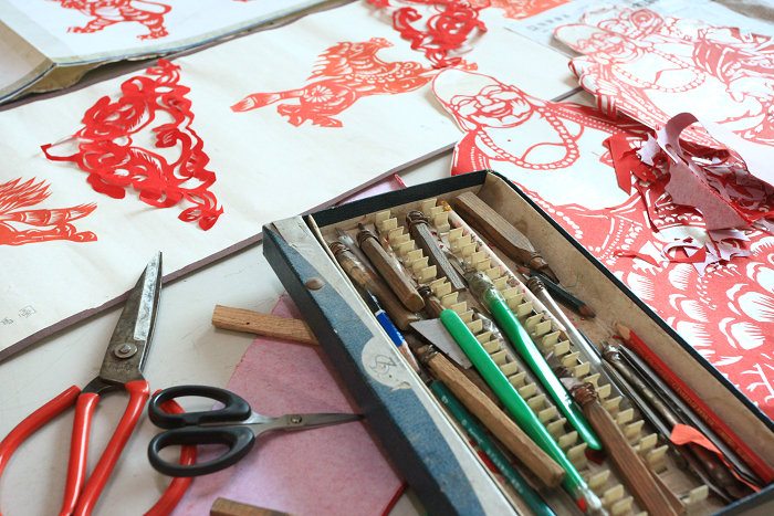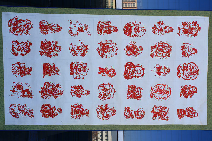 富平剪纸以老庙镇笃祜村的最为有名,相传源于皮影,从汉代传承至今。现在仍广泛用于岁时节日的窗花、门鉴、灯花、礼仪花以及刺绣的花样等。富平剪纸种类丰富、造型多样,主要取材于人物、花卉、动物、乡土风情等,给人以朴实亲切的感觉。艺人在代代相传的过程中摸索出单手剪纸、点染剪纸、彩色剪纸、彩纸套贴、对称剪纸、串联拉花、多折团花、单幅创作等方法来剪刻作品,还创造了描红法、熏染法、针刺法、复写法、剪样拓剪法等方法来复制花样。常用工具包括剪刀、斜刀、槽口刀、圆口刀等以及垫板、锥针、浆糊等辅助工具。富平剪纸曾多次参加各级美术公益展,许多作品被港澳台同胞和外国友人精心收藏。富平剪纸2010年被列入第二批渭南市非物质文化遗产名录。
