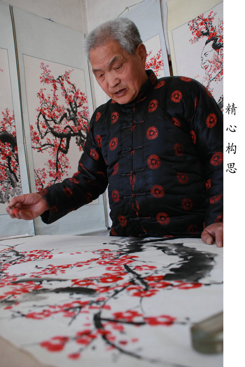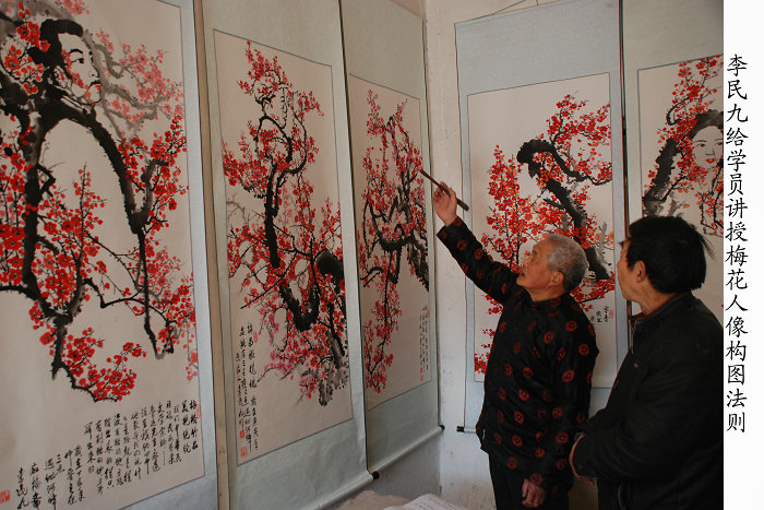 华县梅花人像绘画技艺主要流传于瓜坡镇一带,它产生于清代末年,继承了传统画梅技法的简约、疏朗,同时大胆创新,强调意境,以笔墨传神达意。善于运用梅花和人像组合的场景来凸显思想感情,展示人物精神世界。比如在梅花中画鲁迅,突出他横眉冷对千夫指的傲骨;画伟人毛泽东,显现他在丛中笑的胸怀;画恋人则表现脉脉含情之韵味等等,这种创新得到许多专家学者的认可。作品秦腔角色梅花图曾被西安易俗社收藏。华县梅花人像绘画技艺2010年被列入第二批渭南市非物质文化遗产名录。