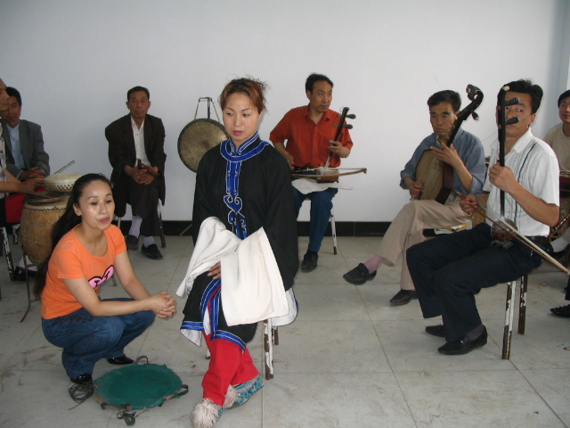 碗碗腔又名“灯碗腔”,是皮影戏音乐唱腔,后来与皮影这种特定的表演形式相分离,单独搬上舞台,成为具有地方特色的剧种。碗碗腔成为舞台剧后,除遵照传统舞台戏剧的表演程式外,还利用真人模拟皮影表演来增加其艺术感染力。大荔碗碗腔的乐器主要由月琴铜碗领奏,硬弦、板胡伴奏,音乐细腻、优雅、耐听,是典型的板腔体。唱词以七字句和十字句为主,也有五字句和“三不齐”(长短句)。通常为上下句结构,也有“单句送”,即七字句在结束时只唱一个上句,曲调慢声而下,给人意犹未尽、余韵犹存的感觉。搬上舞台的碗碗腔戏剧有传统剧目《金碗钗》《白玉钿》等30多本,另外还有《芙蓉出水》等部分现代剧目。大荔碗碗腔2013年被列入第三批渭南市非物质文化遗产名录。