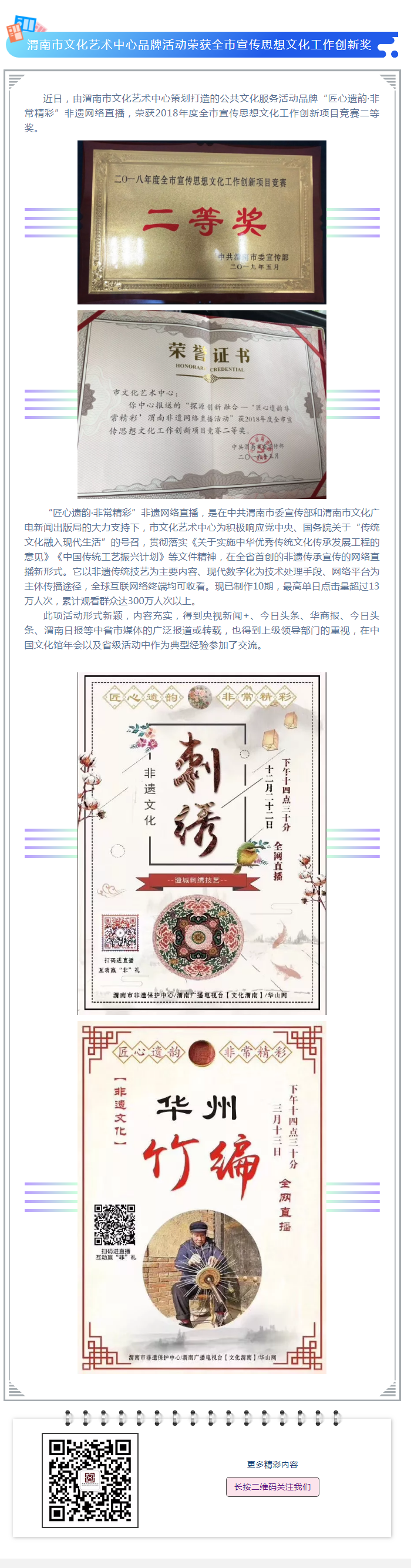 渭南市文化艺术中心品牌活动荣获全市宣传思想文化工作创新奖