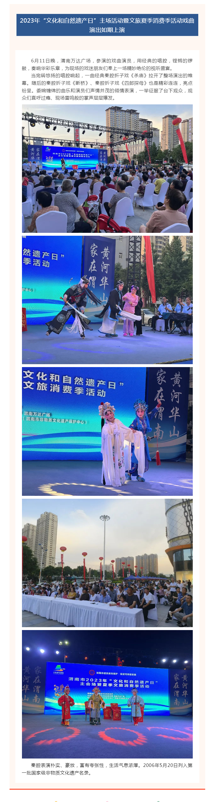 2023年“文化和自然遗产日”主场活动暨文旅夏季消费季活动戏曲演出如期上演