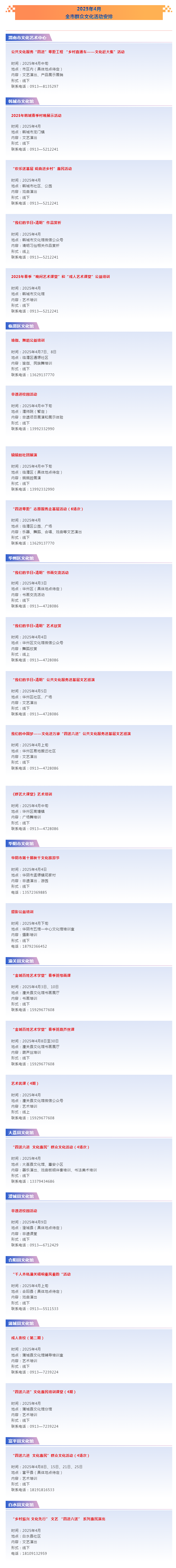全市群众文化活动预告——二0二五年四月
