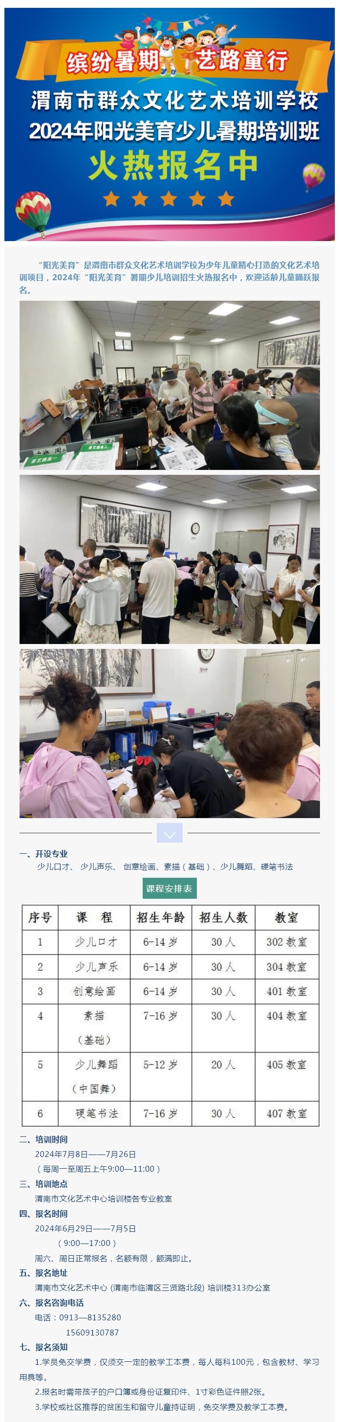 渭南市群众文化艺术培训学校2024年“阳光美育”少儿暑期培训班火热报名中