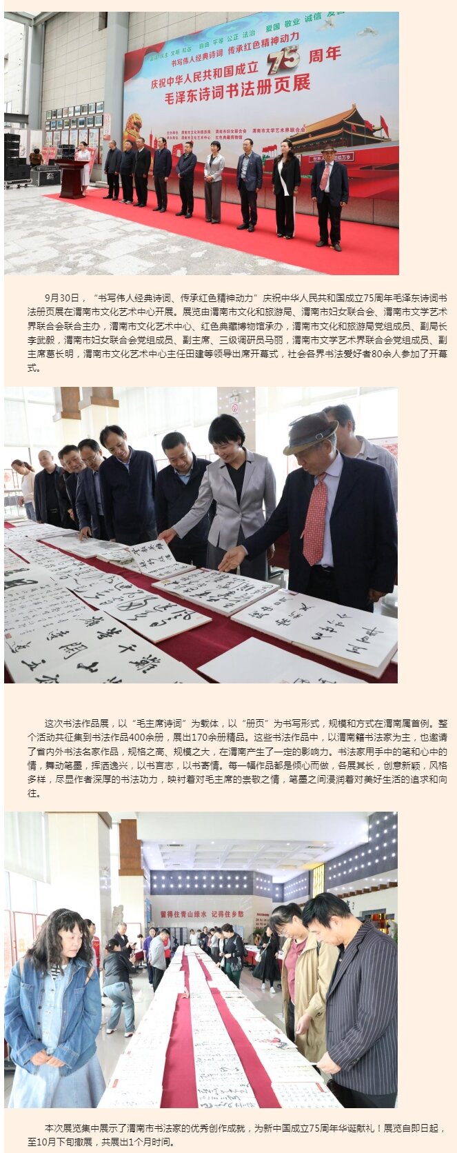 渭南市文化艺术中心举办“书写伟人经典诗词、传承红色精神动力”庆祝中华人民共和国成立75周年毛泽东诗词书法册页展