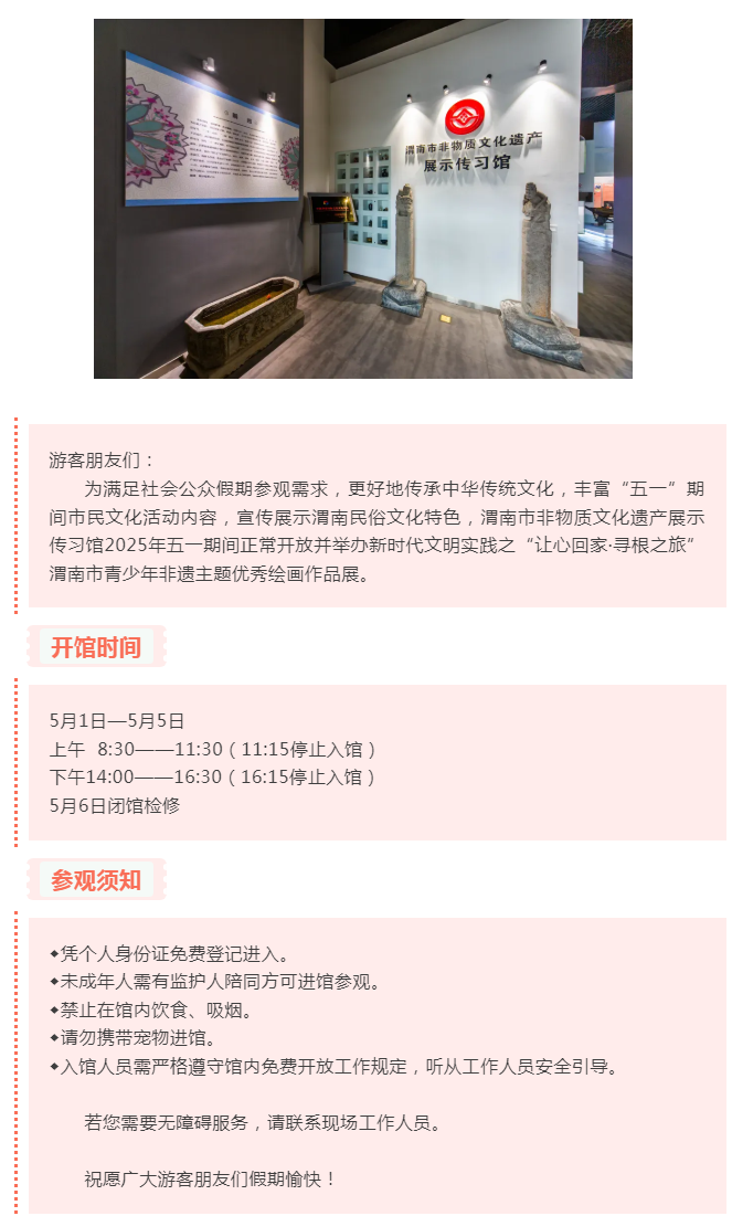 渭南市非物质文化遗产展示传习馆五一假期免费开放及展览公告