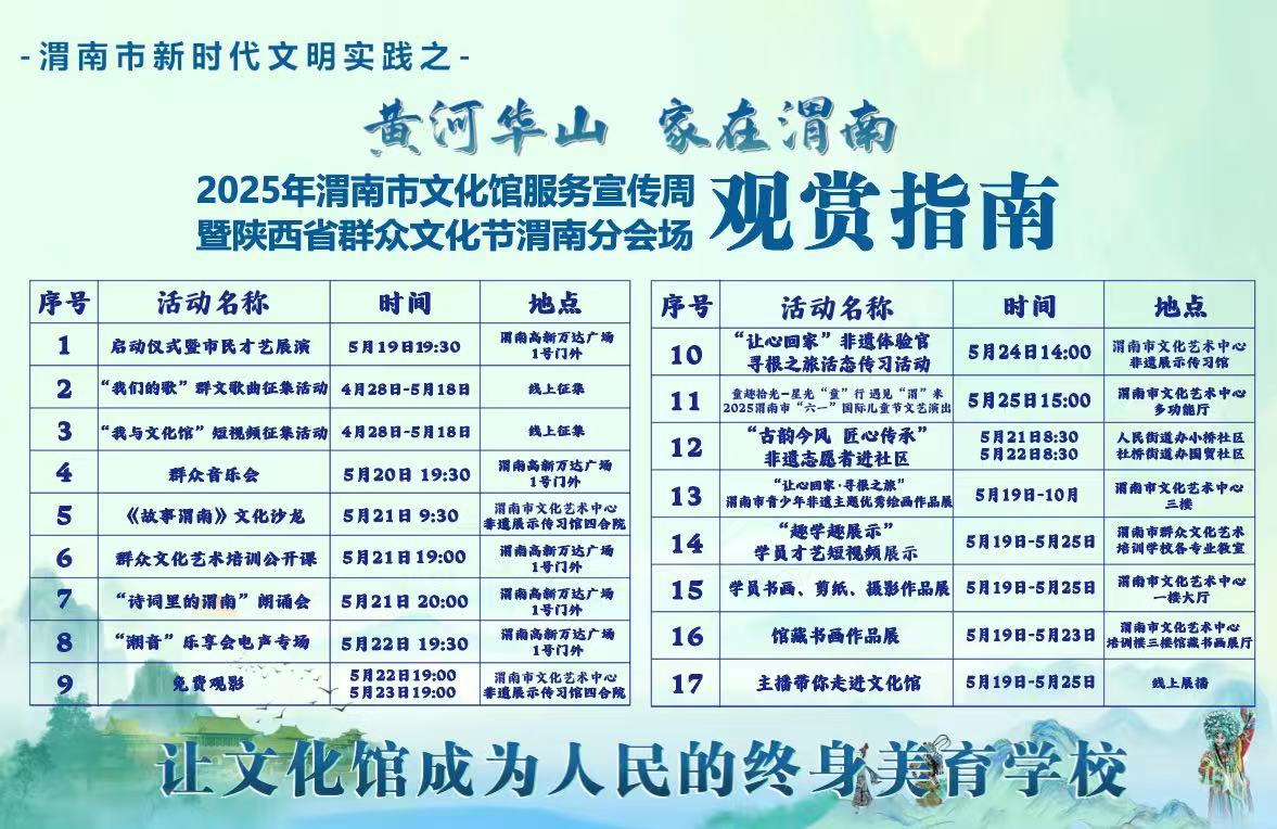 【活动预告】2025年渭南市文化馆服务宣传周暨陕西省群众文化节渭南分会场活动即将火热开启