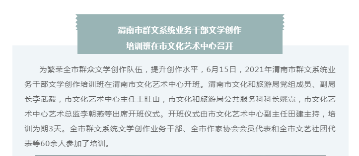 渭南市群文系统业务干部文学创作培训班在市文化艺术中心召开