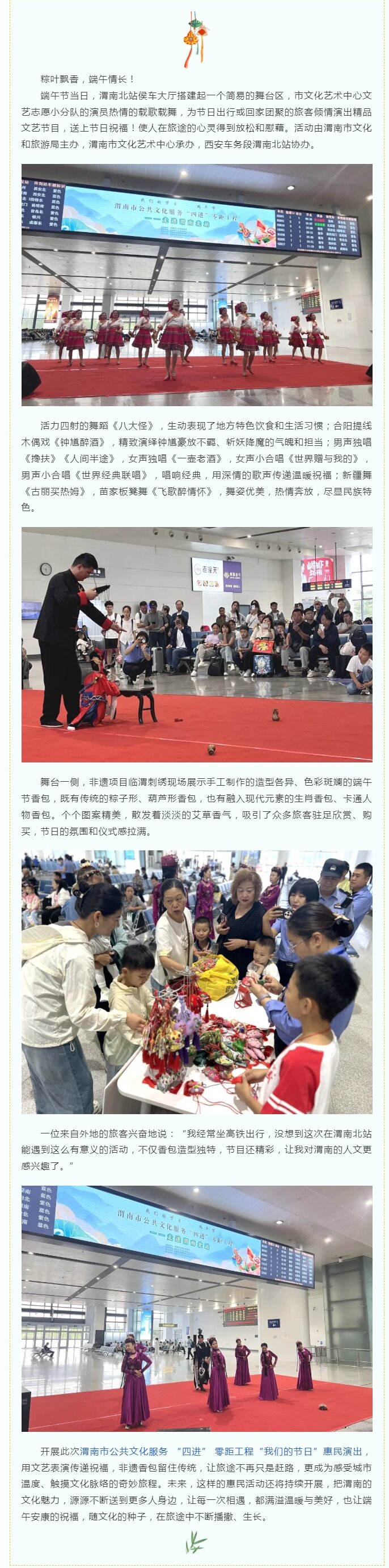 温暖旅途,端午安康! 渭南市公共文化服务“四进”零距工程惠民演出走进渭南北站