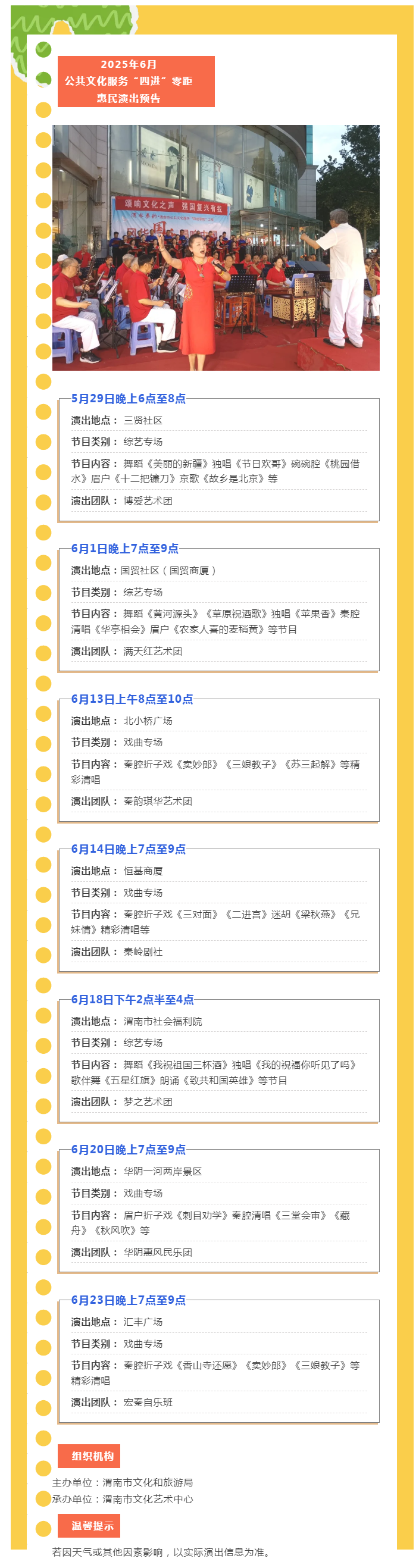 【活动预告】2025年6月公共文化服务“四进”零距惠民演出预告