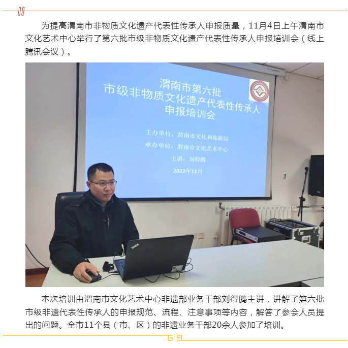 渭南市文化艺术中心举办第六批市级非物质文化遗产代表性传承人申报培训会