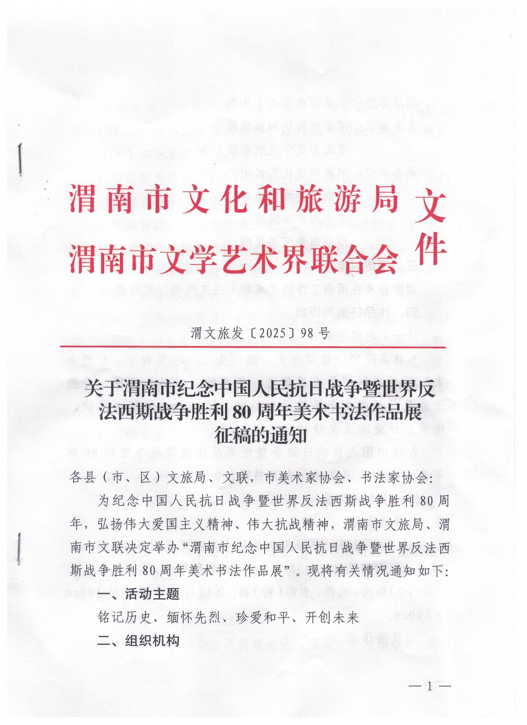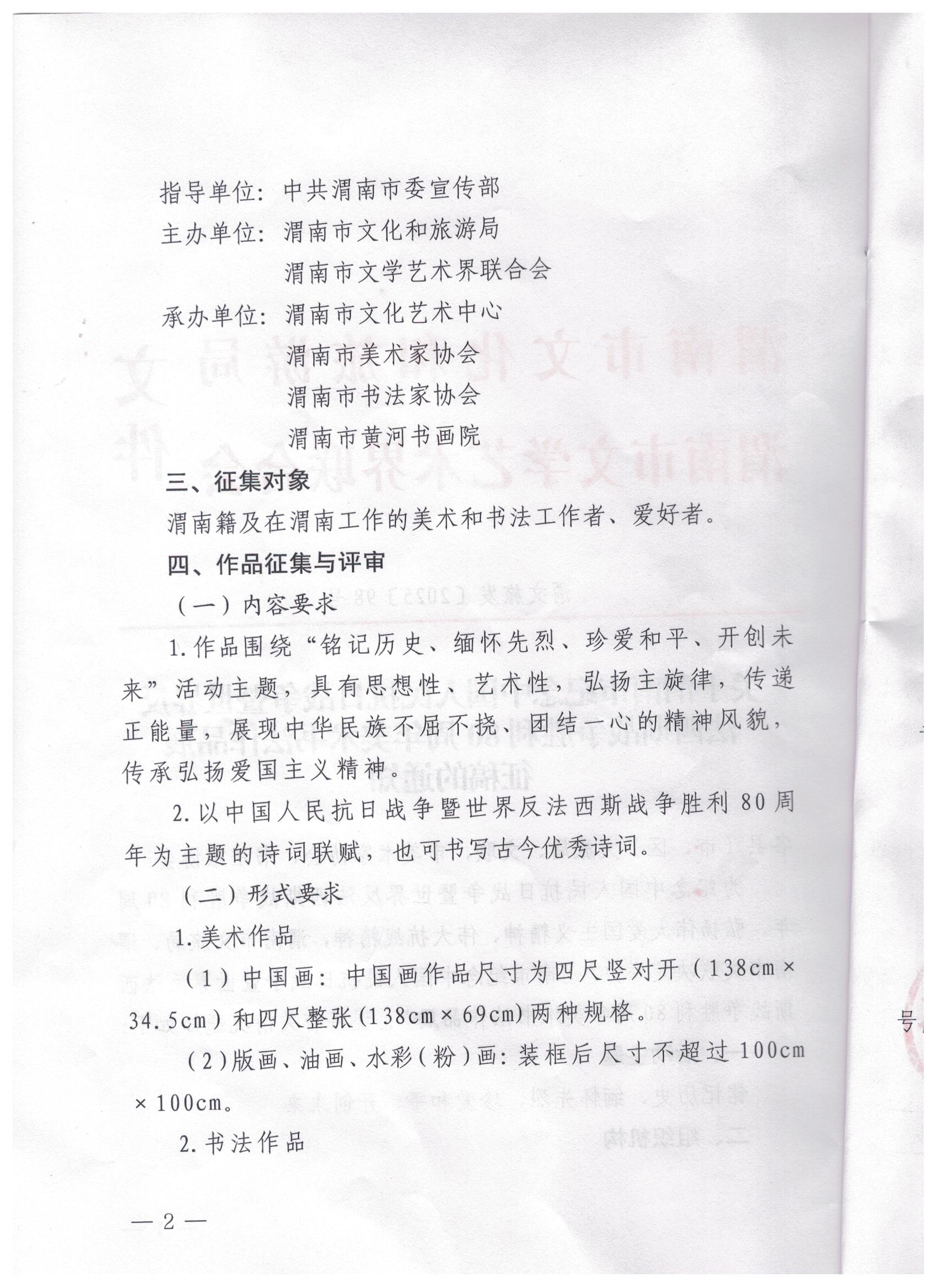 【征稿通知】渭南市纪念中国人民抗日战争暨世界反法西斯战争胜利80周年美术书法作品展