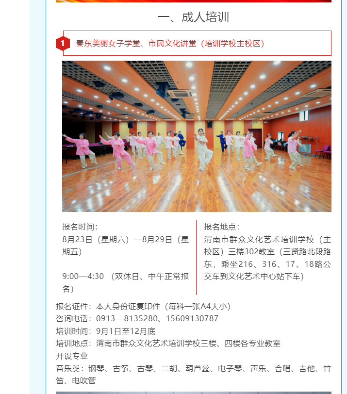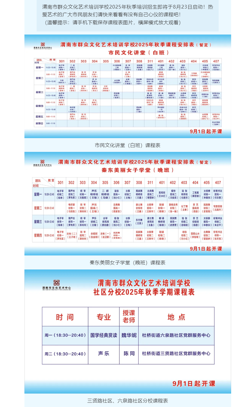 【招生预告】“全民学艺 人人有艺”2025年秋季培训课程表请您查收!