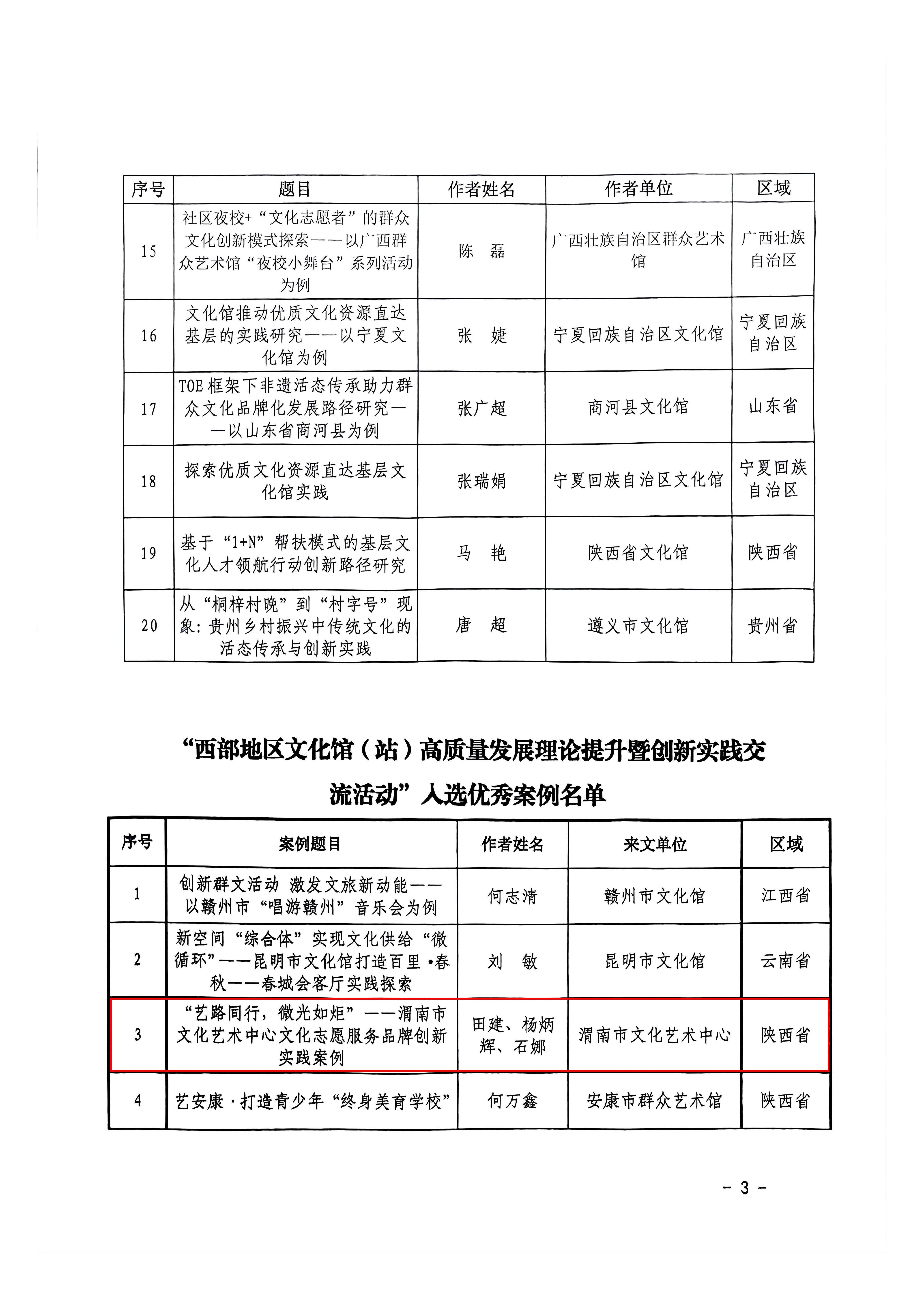 渭南市文化艺术中心案例入选“西部地区文化馆(站)高质量发展理论提升暨创新实践交流活动”征文优秀案例名单