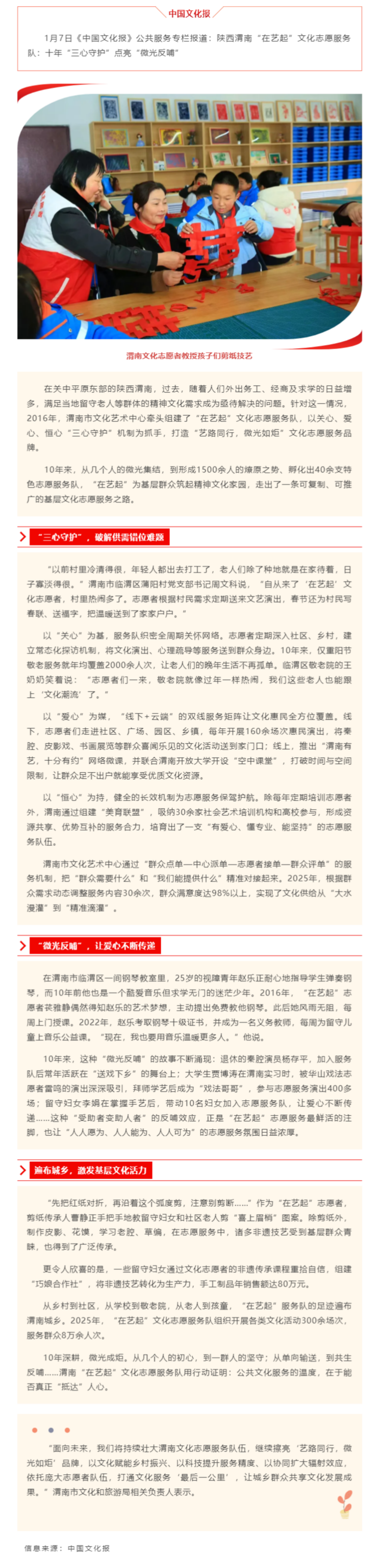 《中国文化报》报道渭南“在艺起”文化志愿服务队创新做法