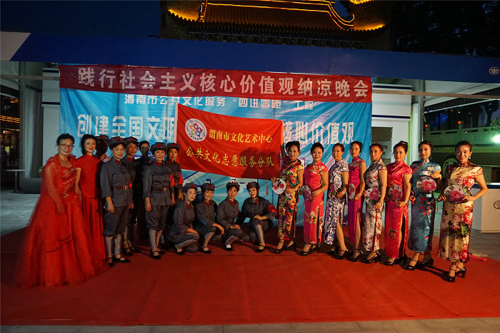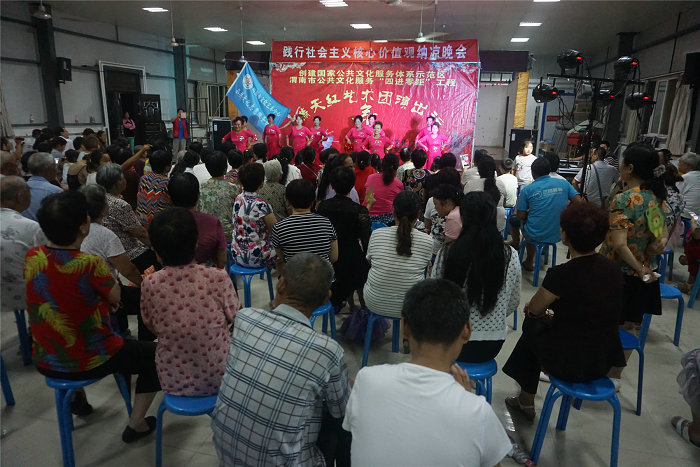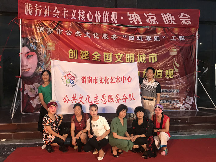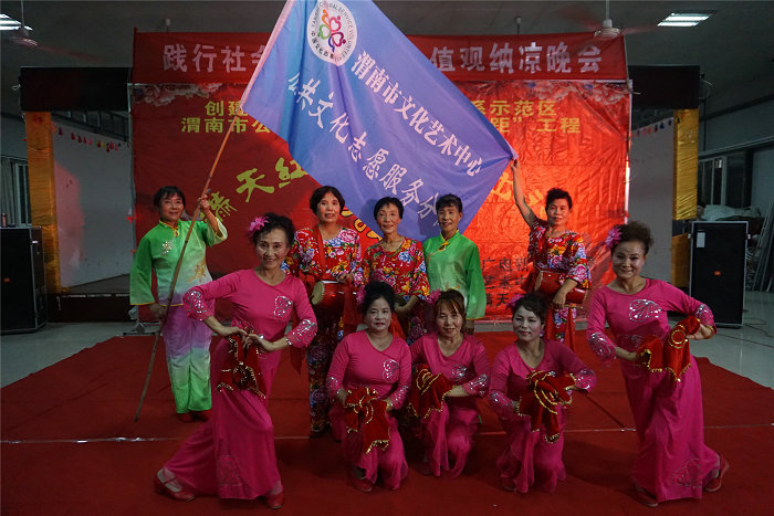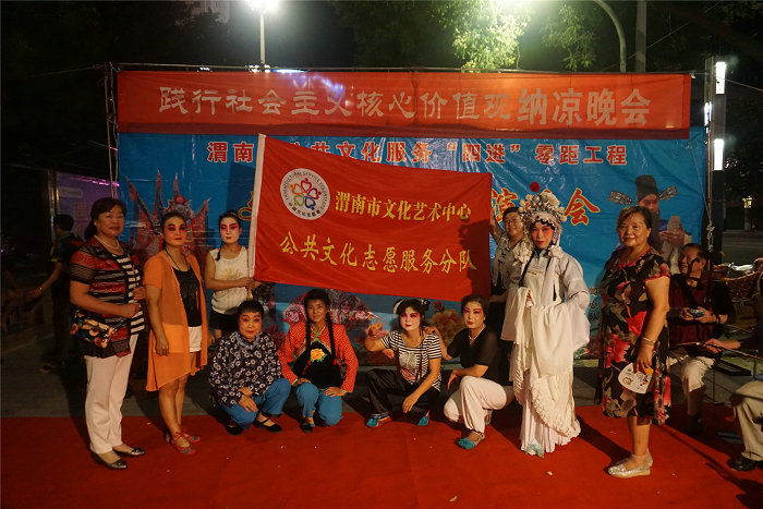 由渭南市文化广电新闻出版局主办,渭南市文化艺术中心承办的“践行社会主义核心价值观” 纳凉晚会,8月10日至8月14日分别在老街美食城、中心广场、丰荫小区、槐衙社区开展了文化志愿者把欢乐送进家门口的活动。