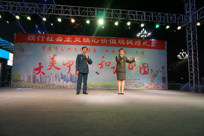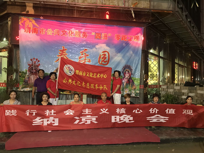 8月14日至8月17日由渭南市文化广电新闻出版局主办,渭南市文化艺术中心承办的“践行社会主义核心价值观” 纳凉晚会走进了中心广场、槐衙社区、新洲国际、西二路北段。