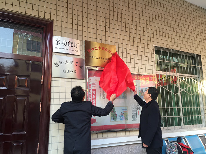 (投稿人:范小花)为了响应党中央、陕西省委省政府的号召,积极推进省高教工委、省扶贫办的“双百工程”文件精神,助推我区打赢脱贫攻坚战,提升地方艺术人才的专业素质和专业水平。 11月 24日,陕西艺术职业学院与华州区文化馆携手建立的“陕西艺术职业学院华州区社会艺术人才培训基地”揭牌仪式在华州区文化馆举行。陕西艺术职业学院院长强陆平、华州区政府副区长任武志及区文体广电局、文化馆有关领导参加。