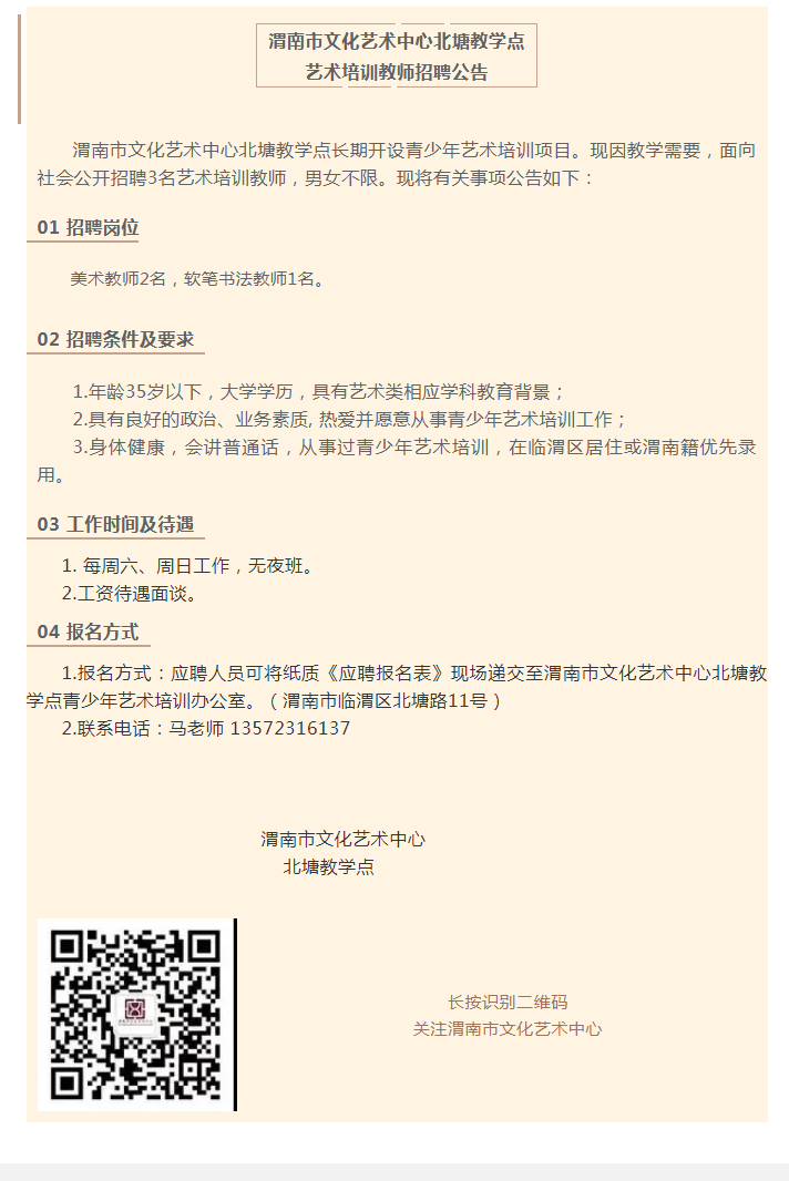 渭南市文化艺术中心北塘教学点 艺术培训教师招聘公告