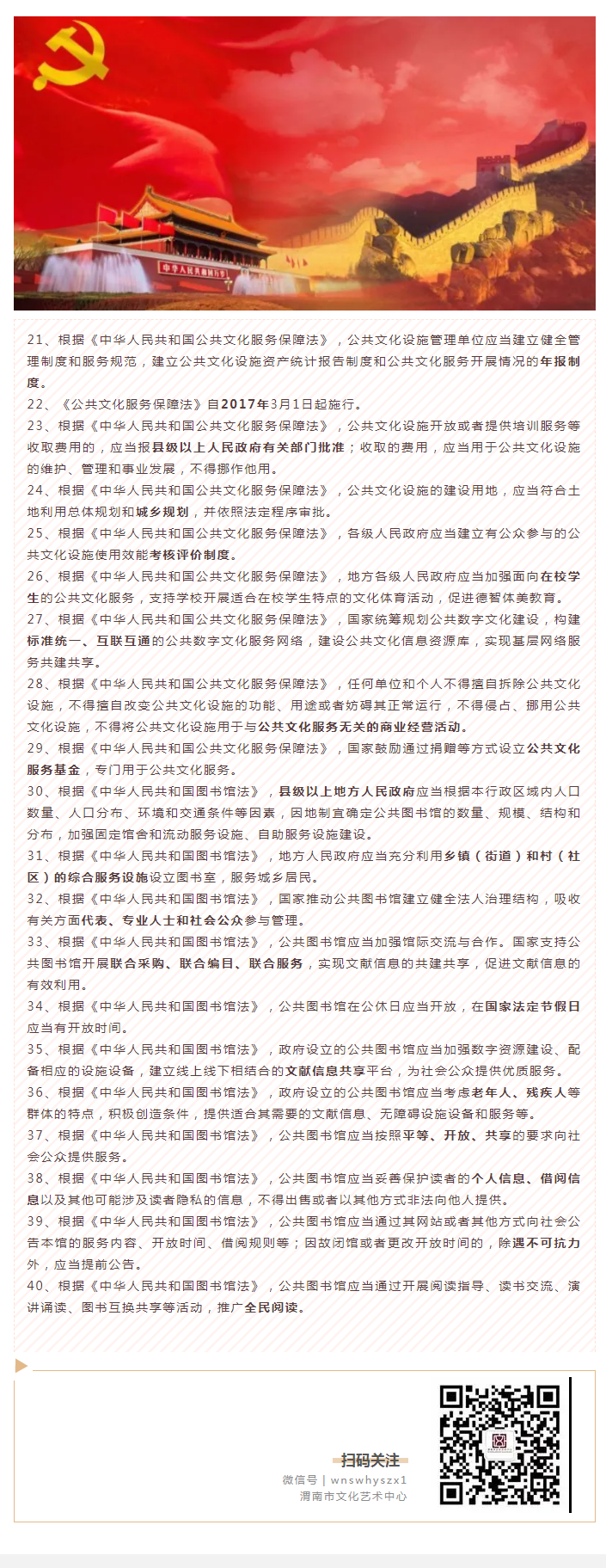 国家公共文化服务体系示范区标准及公共文化领域两法一条例宣传工作应知应会知识要点(二)