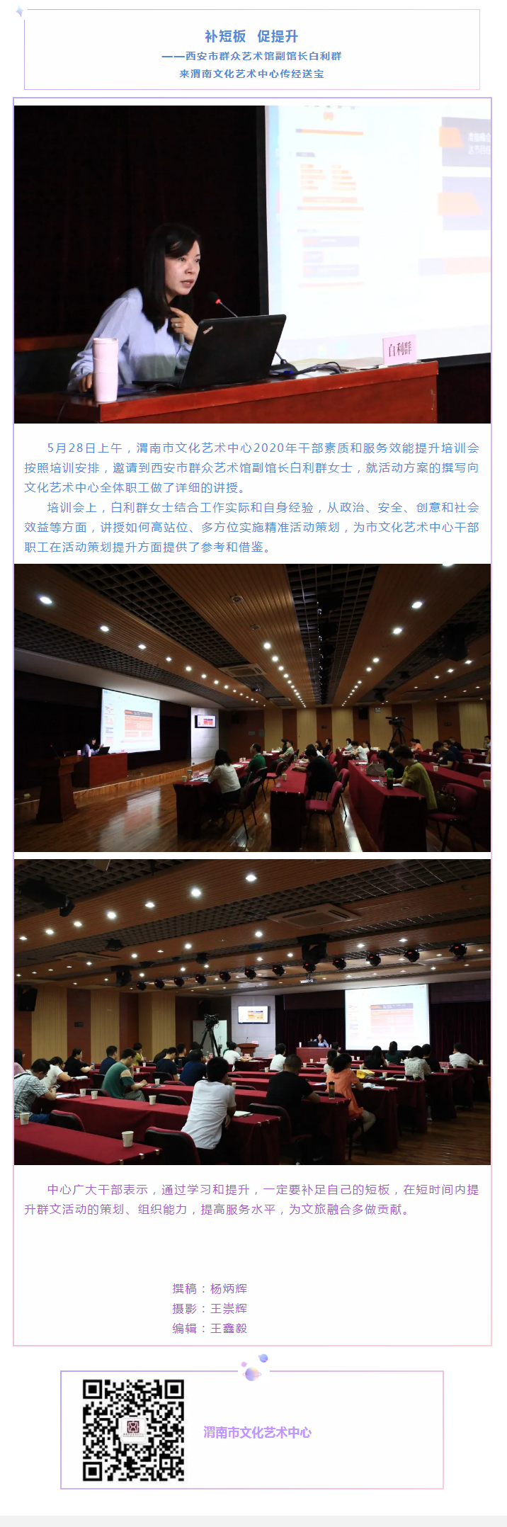 补短板 促提升 ——西安市群众艺术馆副馆长白利群来渭南文化艺术中心传经送宝